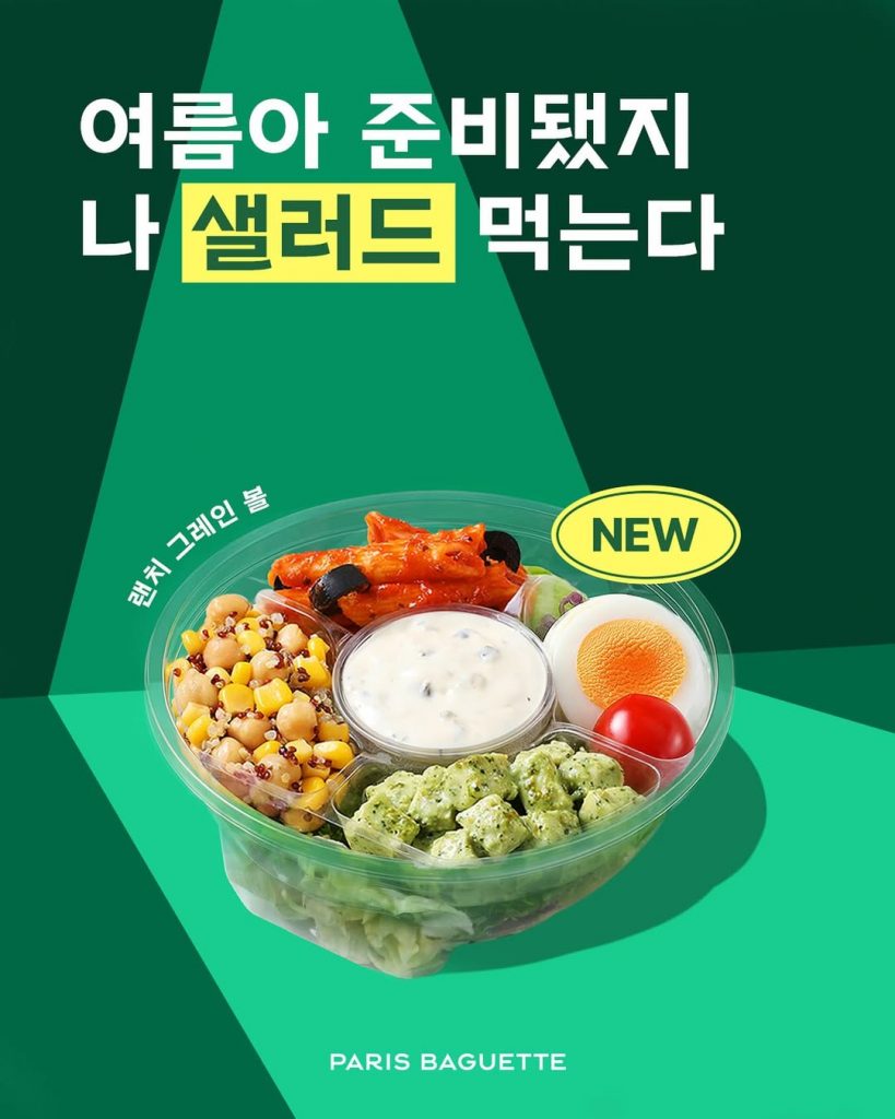 파리바게뜨에서도 신선한 샐러드를 만나볼 수 있다는 점, 알고 계셨나요? 산뜻한 랜치 드레싱에 곡물믹스를 더하고, 향긋한 바질치킨과 토마토 펜네를 한 그릇에 담아낸 랜치 그레인 볼이 새롭게 출시되었습니다.