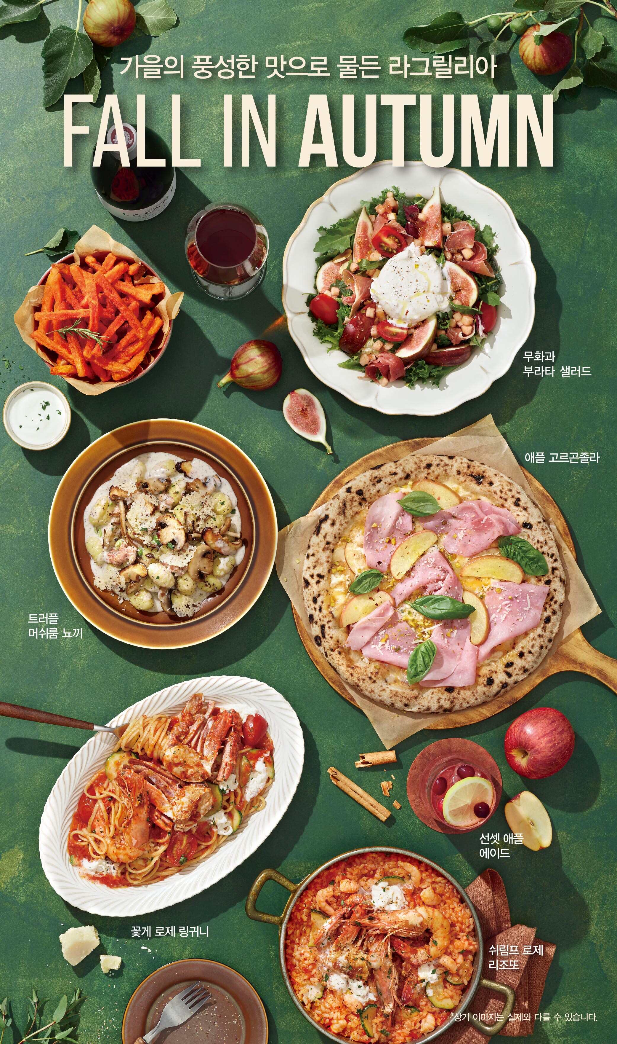 이번에 선보이는 신메뉴는 ‘FALL IN AUTUMN(가을의 풍성한 맛으로 물든 라그릴리아)’를 주제로 가을 입맛을 돋우는 무화과, 버섯, 사과 등 제철 재료를 활용하여 라그릴리아 만의 특별한 레시피를 더한 것이 특징이다.