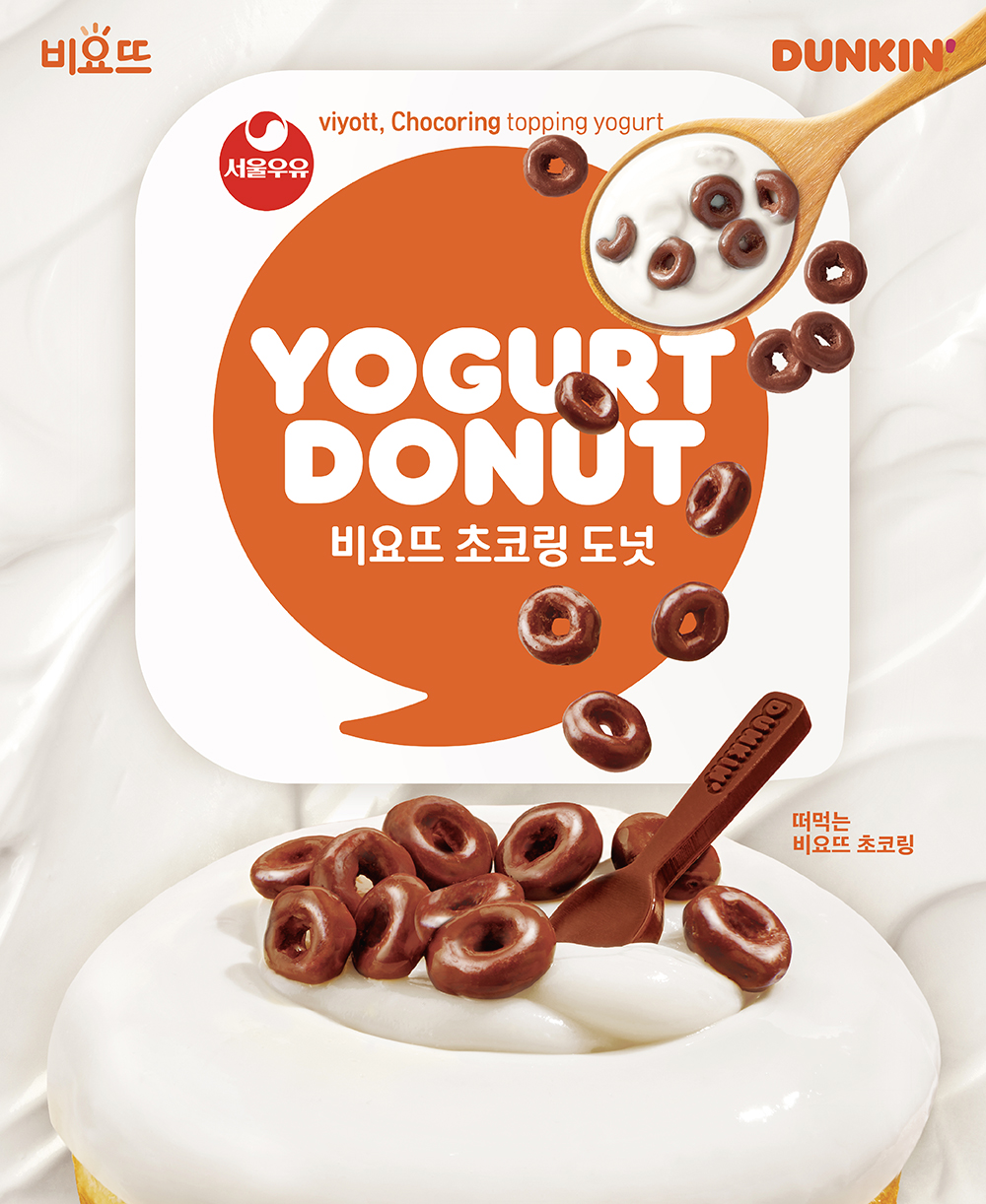 던킨의 ‘떠먹는 비요뜨 초코링’은 토핑과 요거트를 함께 먹는 ‘비요뜨’를 도넛으로 재해석한 메뉴다. 최근 젊은 소비자층의 요거트 플레이버에 대한 선호와 다양한 재료를 토핑해 먹는 디저트 트렌드를 반영해 출시하게 됐다.