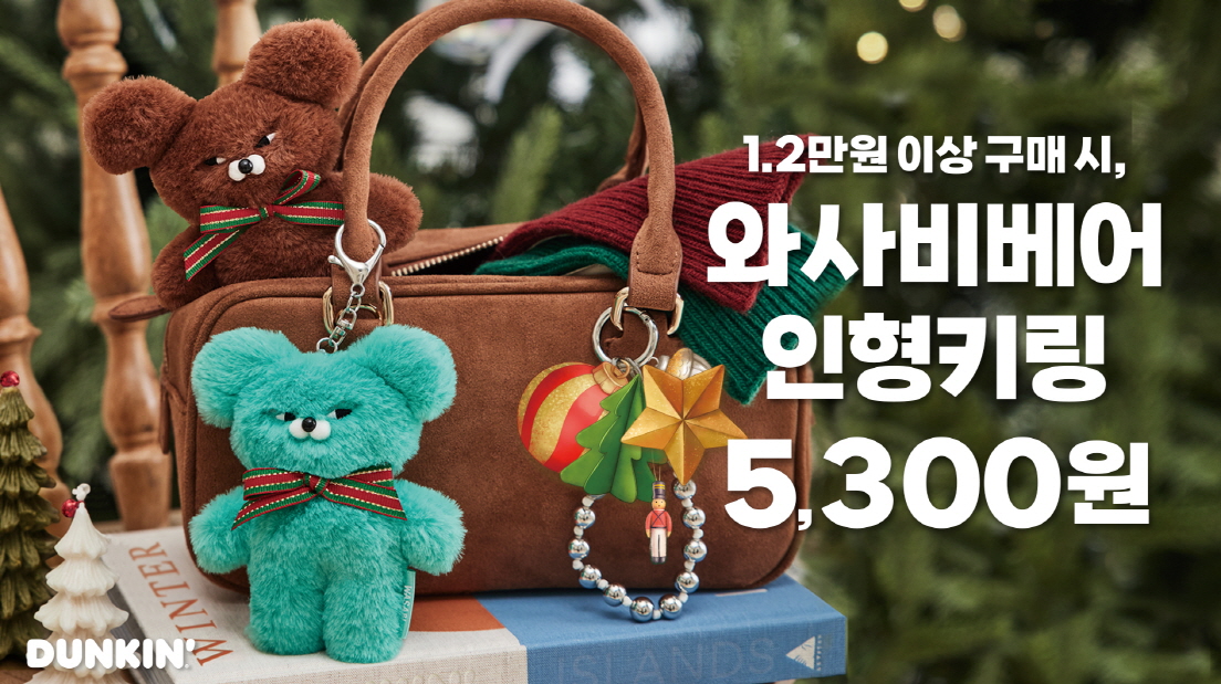 SPC 비알코리아가 운영하는 던킨이 윈터 굿즈 ‘와사비베어 인형 키링 3종’을 출시했다.