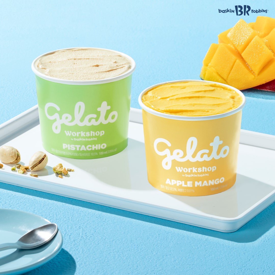 신제품 젤라또 2종은 워크샵 젤라또 플레이버 12종 중 가장 고객 구매율이 높았던 △고소하고 달콤한 피스타치오의 풍미가 가득한 ‘피스타치오 젤라또’와 △상큼 달콤한 망고의 맛과 쫀득한 식감이 특징인 ‘애플망고 젤라또’로 구성됐다. 보관과 취식이 간편한 소용량 컵(100ml) 형태로 출시되며, 오는 27일부터 전국 매장에서 만나볼 수 있다.