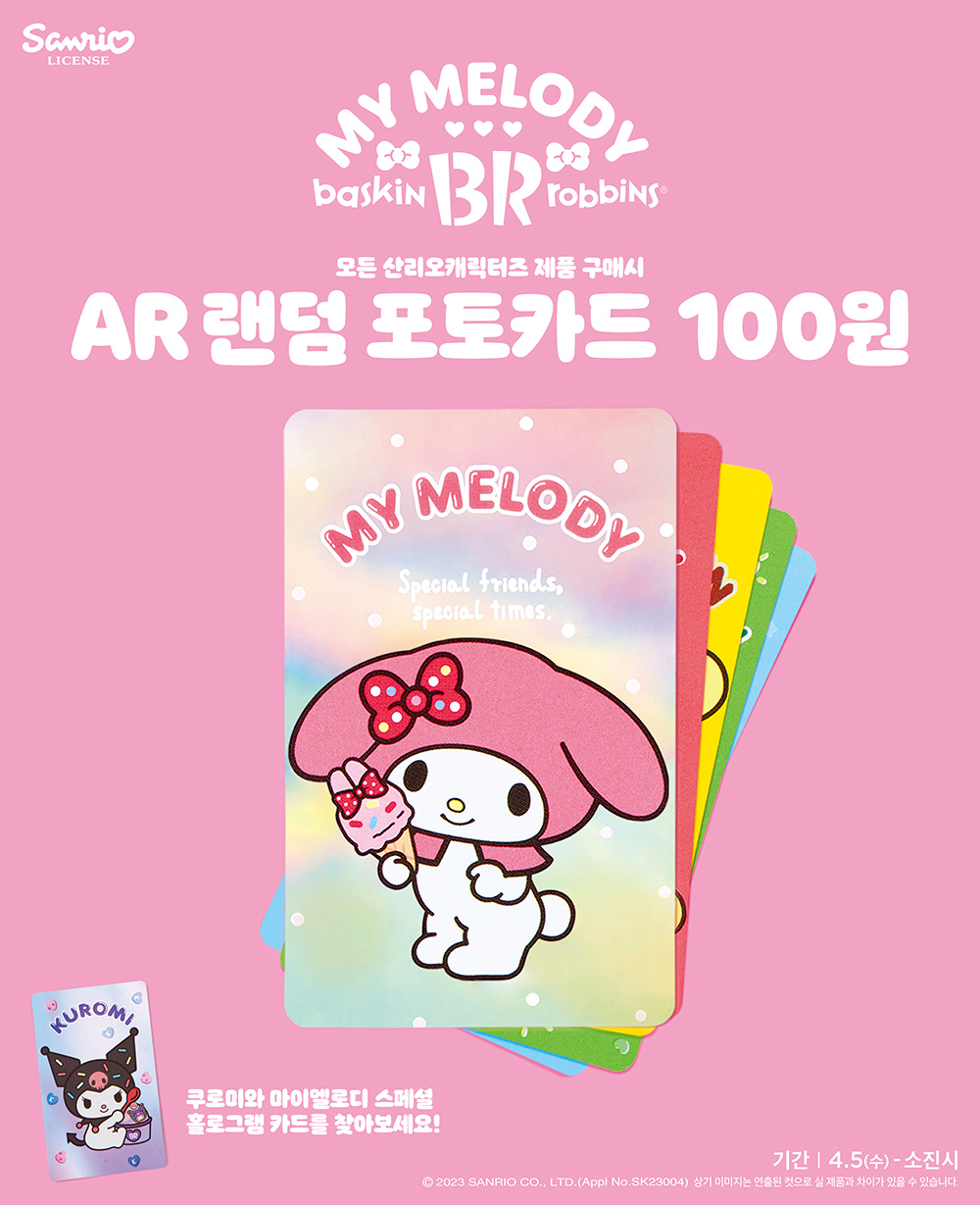 SPC 배스킨라빈스가 글로벌 캐릭터 기업 ‘산리오’의 ‘산리오캐릭터즈’와 협업한 4월 이달의 맛 출시를 기념해 ‘산리오캐릭터즈 AR(증강현실) 랜덤 포토카드’를 선보인다고 5일 밝혔다.