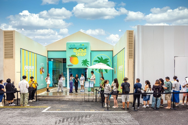 (사진3) ‘망빙고 가챠샵’ 내 셀피존에서 방문객이 트로피컬 무드의 포토존에서 기념사진을 촬영하고 있다.
