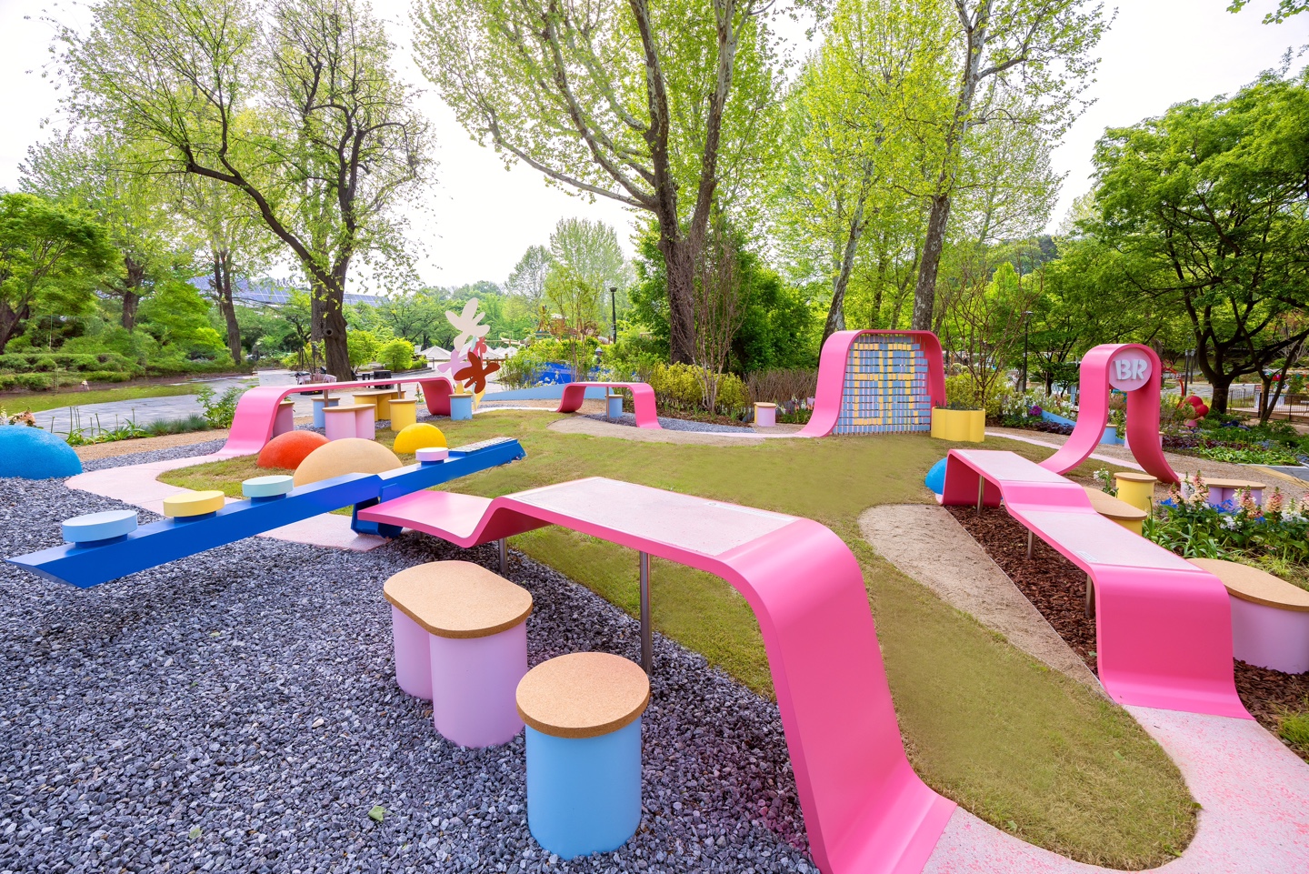 어린이대공원 생태연못 인근에 위치한 ‘핑크드림가든’은 배스킨라빈스를 상징하는 아이템인 ‘핑크스푼’을 업사이클링(Upcycling, 생활 폐기물을 재가공해 새로운 가치를 가진 상품으로 만드는 활동)해 어린이들이 자연 속에서 자유롭고 안전하게 뛰어 놀 수 있도록 만든 놀이 공간이다.