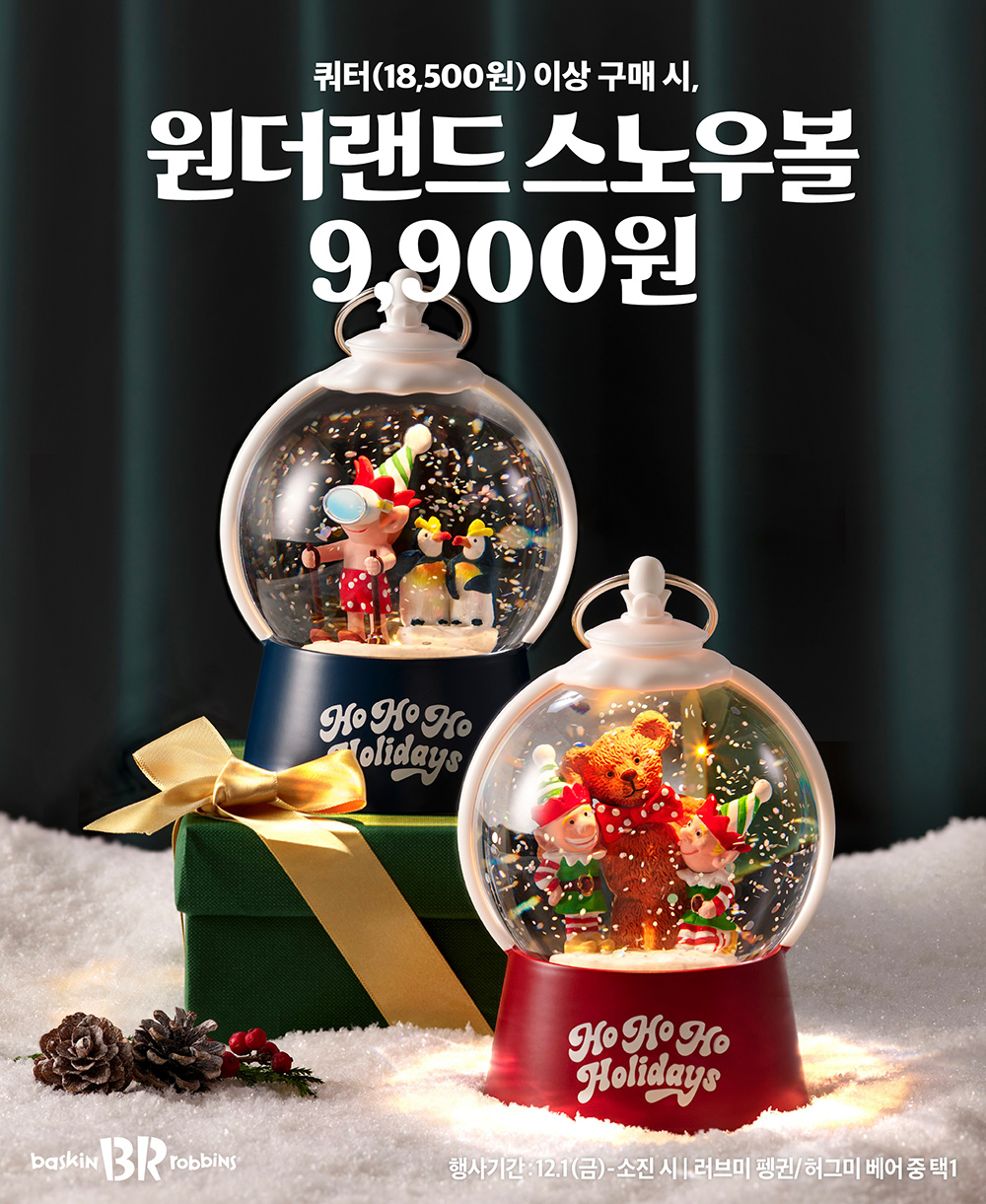 SPC 배스킨라빈스 관계자는 “모두가 행복하게 웃을 수 있는 연말을 만들어줄 첫 번째 굿즈로 ‘원더랜드 스노우볼’을 선보인다”며 “친구와 가족, 소중한 사람들과 보내는 연말 시즌, 배스킨라빈스와 함께 동화처럼 행복한 홀리데이를 즐기시길 바란다”고 전했다.