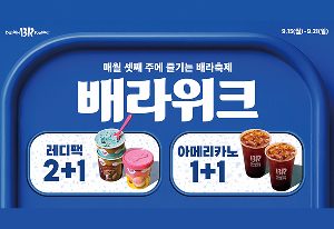 21일까지 레디팩 2개 구매 시 1개를 추가 증정하는 ‘레디팩 2+1’, 아메리카노 구매 시 한 잔을 더 증정하는 ‘아메리카노 1+1’ 혜택을 제공한다. 행사 진행 매장 등 자세한 사항은 배스킨라빈스 공식 홈페이지에서 확인할 수 있다.