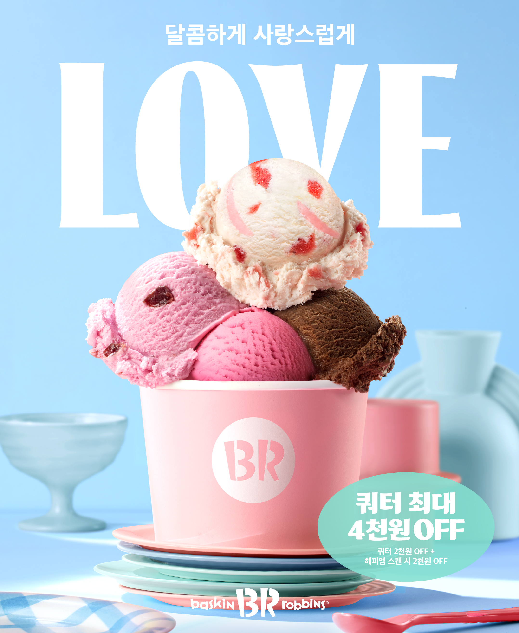 배스킨라빈스는 오는 14일까지 쿼터 사이즈를 최대 4,000원 할인하는 특별 프로모션을 진행한다. 매장에서 쿼터 사이즈를 구매하는 고객에게 2,000원 할인 혜택이 적용되고, 해피포인트 애플리케이션에서 멤버십 계정 바코드를 스캔하면 추가 2,000원의 가격 혜택이 주어진다. (일부 매장 제외, 자세한 내용은 배스킨라빈스 공식 홈페이지 참고)