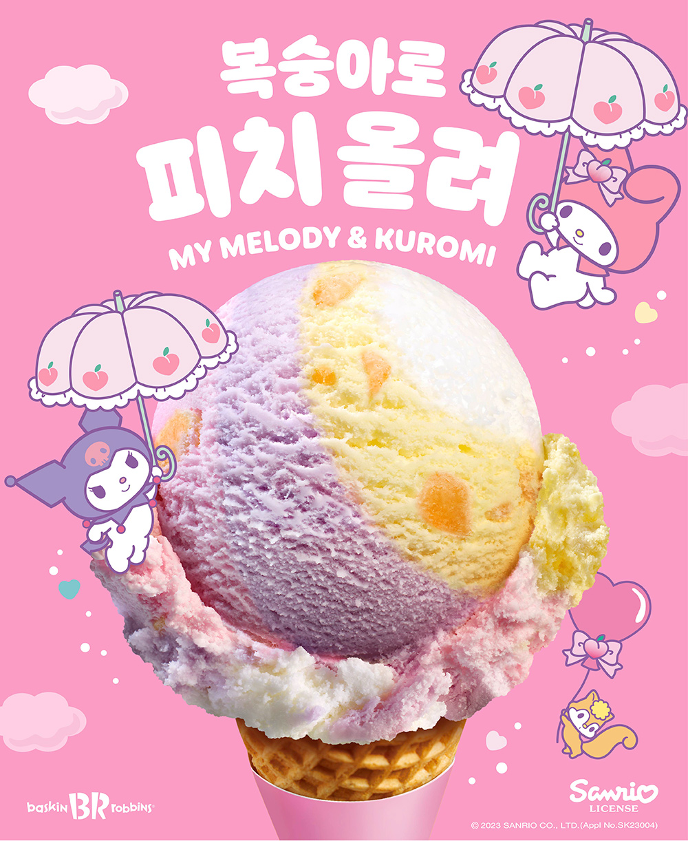 배스킨라빈스 관계자는 “최근 MZ세대를 중심으로 많은 사랑을 받고 있는 산리오의 인기 캐릭터 ‘마이멜로디’와 ‘쿠로미’와 함께 4월 이달의 맛 ‘복숭아로 피치 올려’를 출시했다”며 “배스킨라빈스가 준비한 달콤상큼한 복숭아 플레이버와 ‘산리오캐릭터즈’와 함께 행복한 4월을 만드시길 바란다”고 전했다.