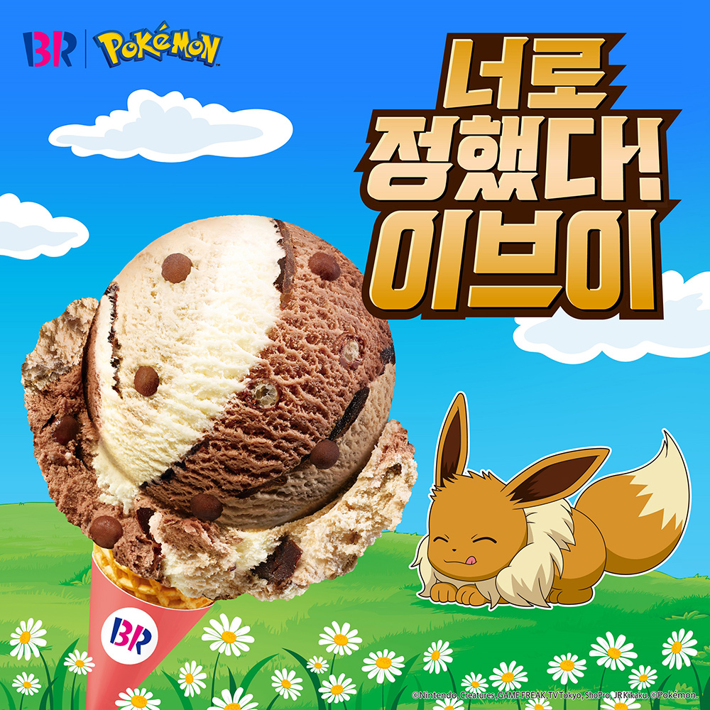 SPC그룹이 운영하는 배스킨라빈스가 전 세계적으로 사랑받는 콘텐츠 포켓몬스터를 모티브로 한 이달의 맛 ‘너로 정했다! 이브이’를 출시한다고 30일 밝혔다.