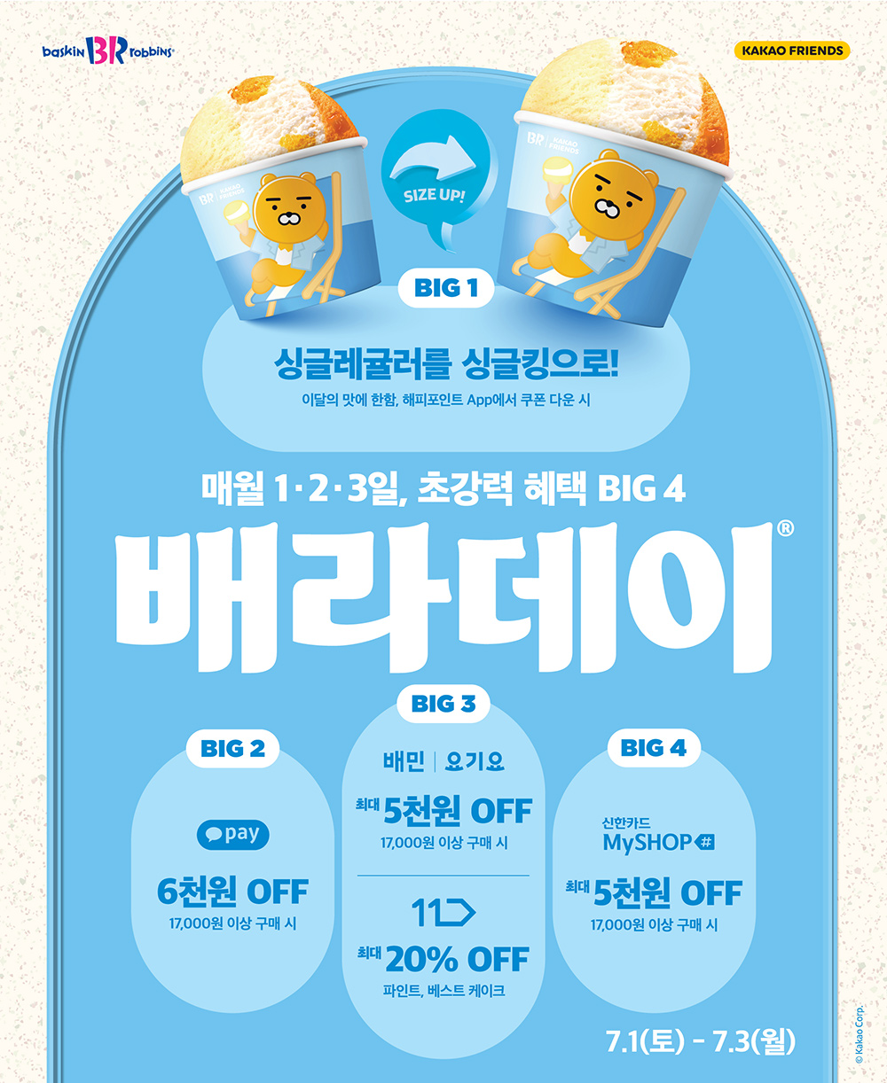 – 이달의 맛을 가장 먼저, 가장 큰 혜택으로 제공하는 ‘배라데이’ 7월 1일부터 3일간 진행