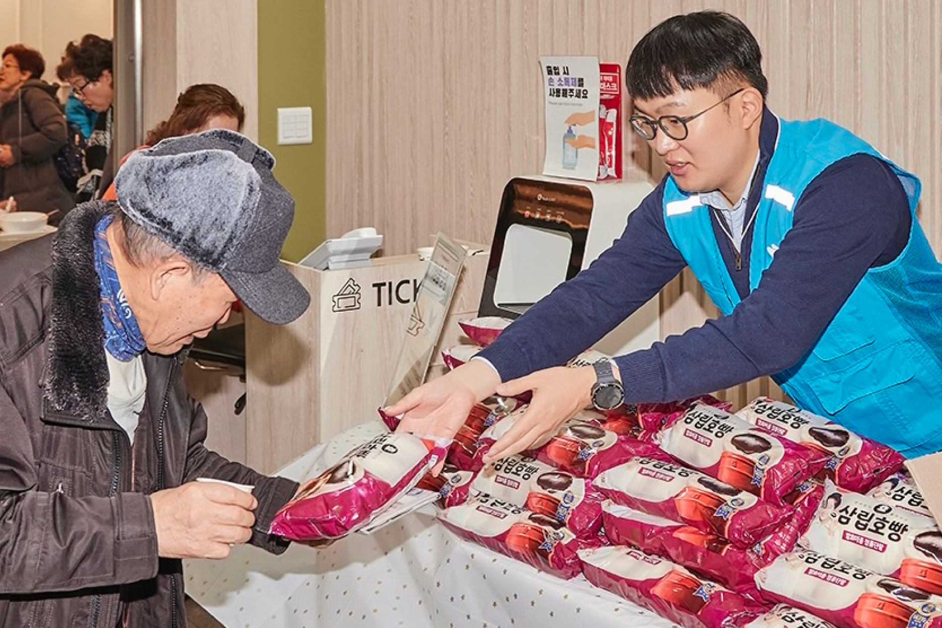 SPC그룹 임직원들은 22일 SPC1945 사옥 인근에 위치한 양재노인종합복지관을 찾아 250명의 어르신에게 직접 떡국을 배식하고 삼립 호빵을 전달했다. 이날 진행된 복지관 명절 행사장에도 삼립 호빵 부스를 설치해 제품을 제공했다.