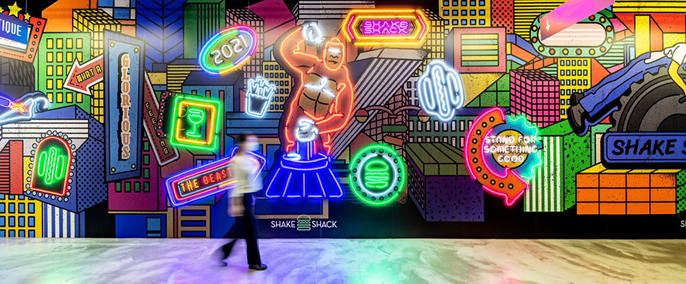 쉐이크쉑은 매장 오픈 시마다 해당 지역의 특성을 반영한 호딩 아트를 통해 지역 커뮤니티와 소통해왔으며 고객들이 참여 가능한 독특한 공공 문화 예술 작품을 선보이고 있다.