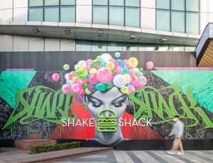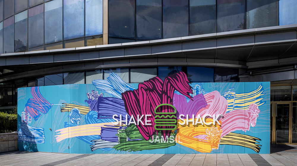 쉐이크쉑은 오픈에 앞서 시원스러운 붓의 움직임과 강렬한 색상 활용이 돋보이는 아티스트 ‘하명은’과 협업해 새로 문을 열 잠실점의 모습을 축제의 순간으로 표현한 ‘호딩 아트(Hoarding Art, 공사장 주위의 임시 가림막에 그리는 작품)’를 선보였다. 작가의 시그니처인 형형색색의 붓 터치와 자유롭게 흩어지는 쉐이크쉑의 아이콘으로 쉐이크쉑의 23번째 매장 오픈을 축하하는 폭죽의 이미지를 담아냈다.