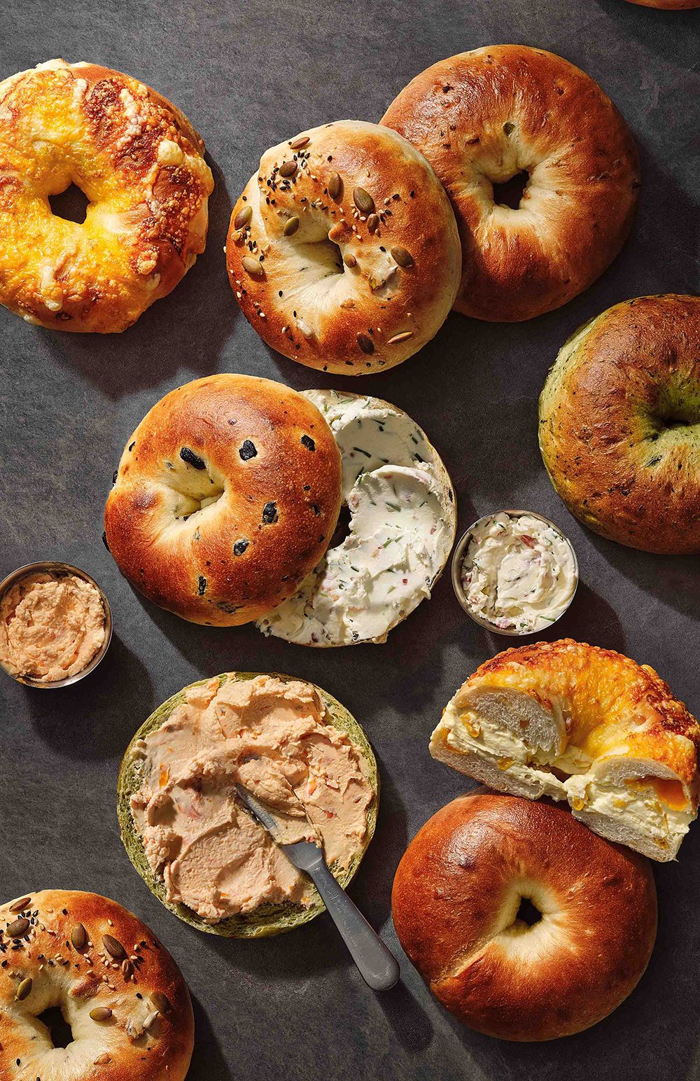 간편한 식사 대용으로 즐길 수 있도록 한국적인 맛을 더한 제품 등 이색적인 메뉴도 함께 선보인다. △향긋한 양파와 알싸한 고추장아찌가 들어가 이색적인 맛을 내는 ‘고추장아찌 크림치즈’△베이컨, 양파, 치즈, 올리브, 부추 등이 알차게 들어가 식사 대용으로 제격인 ‘어니언 부추 크림치즈’ △바질, 시금치, 토마토와 크림치즈의 상큼한 조화가 돋보이는 ‘토마토 크림치즈’ △고소한 곡물에 단짠 솔티드카라멜을 조합해 반전 매력이 있는 ‘솔티드 카라멜 크림치즈’ △체다, 에멘탈, 그뤼에르 치즈와 옥수수를 듬뿍 더해 달콤하고 고소한 ‘스위트콘 크림치즈’ 등이다.