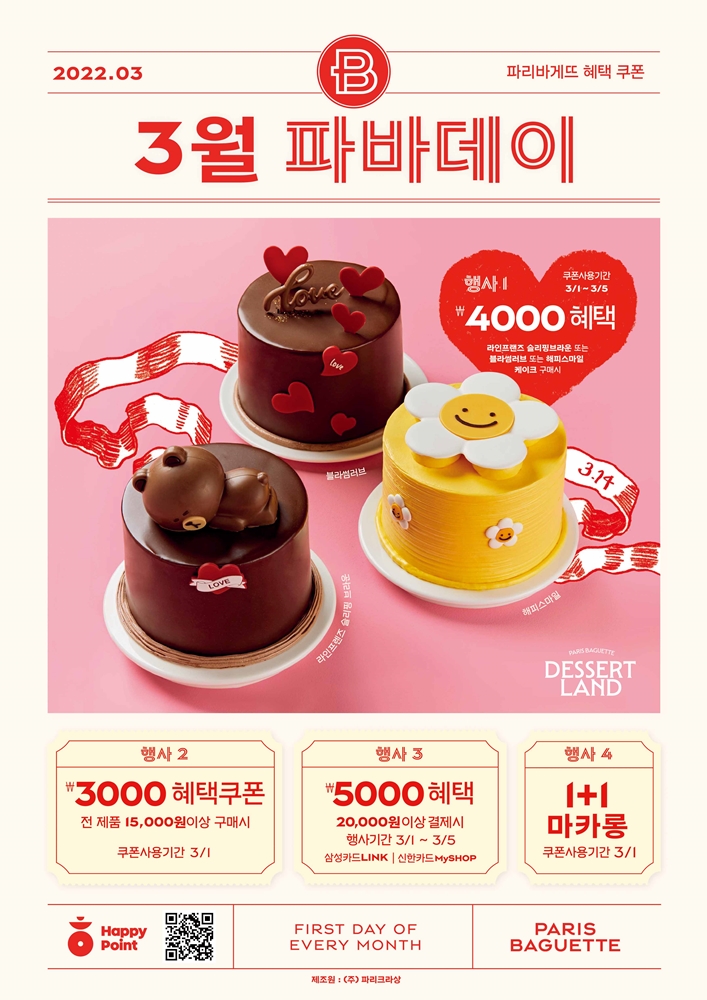 파리바게뜨가 3월의 ‘파바데이’ 프로모션을 진행한다고 28일 밝혔다.