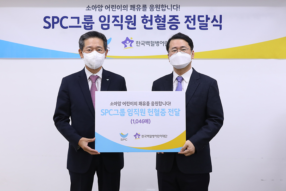 SPC Group (CEO: Hur Young-in) announced on October 28, 2021, that the Group conveyed to the Korea Childhood Leukemia Foundation (Chairman of the board: Oh Yeon-cheon) 1,046 blood donor cards donated by executives and employees at the Group.