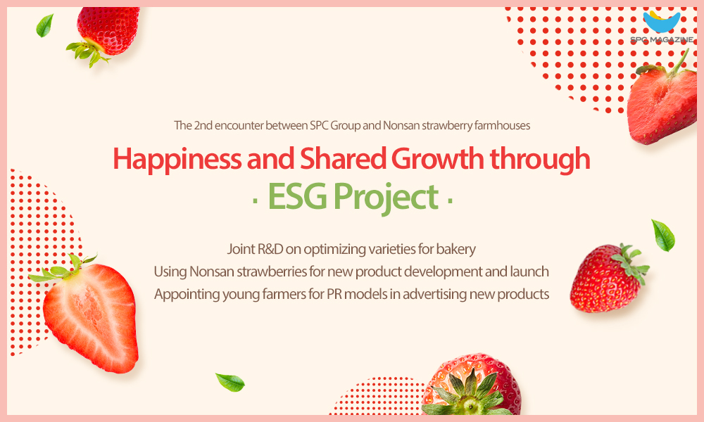 In February last year, SPC Group showcased a wide variety of strawberry products in partnership with Nonsan strawberry farmhouses as part of ‘Happiness and Shared Growth through ESG project’. A year has passed since. This time, the Group promoted the second encounter by taking the project to the next-level format. Along with new product developments using Nonsan strawberries, the Group also began to support young farmers through joint research on new strawberry varieties. We introduce SPC Group’s very special Happiness and Shared Growth through ESG project that gives wings to young farmers so that they can fulfill their dreams.