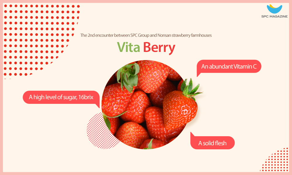 Vita Berry is a new strawberry variety introduced by Happiness and Shared Growth ESG Project, and developed for export by Strawberry Research Institute under Chungcheongnam-do Agricultural Research & Extension in 2019. Innovation Lab, SPC Group’s research center has been involved in joint research with the Strawberry Research Institute and the city of Nonsan since January 2019 to improve and optimize Vita Berry for bakery products. Vita Berry has a high sugar content of 16Brix compared to existing variety with 10-12Brix. It is nutritionally superior with an abundance of Vitamin C along with solid flesh and a rich scent.