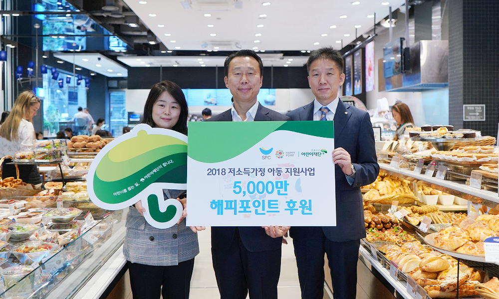 SPC그룹은 여름방학을 앞두고 결식 우려 저소득가정 아동에게 SPC그룹 매장에서 사용할 수 있는 해피포인트 총 5,000만 포인트(5,000만원 상당)을 후원했습니다.