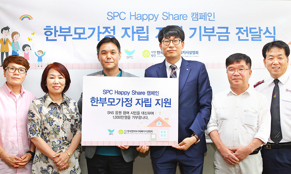 SPC해피셰어 캠페인은 카카오 사회공헌 서비스 ‘같이가치 with Kakao’에 한부모 가족 이야기를 소개하고 시민들이 이를 SNS에 공유하거나 응원 댓글을 달면 건당 일정 금액을 적립해 지원하는 프로그램으로, 후원금 전액은 SPC그룹이 부담하게 됩니다. SPC그룹은 지난 1월 1천만 원, 5월 1천만원 후원에 이어 3번째로 한부모가족 복지시설의 저소득 한부모가족 자립 지원을 후원했는데요. 전국의 저소득 한부모가족을 대상으로 지속해서 후원금을 전달한 기업은 SPC그룹이 처음입니다.