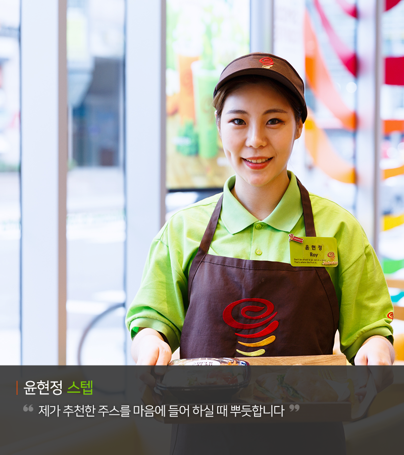 l 과일을 좋아하는 자신에게는 잠바주스가 최고의 직장이라고 말하는 안홍준 점장