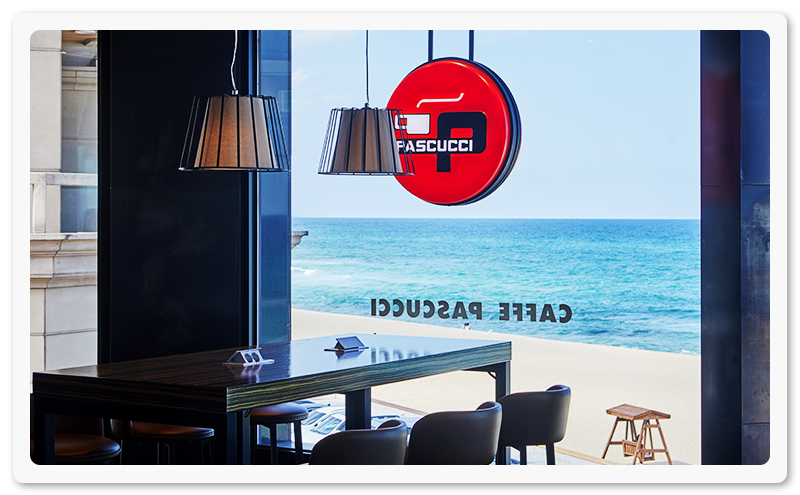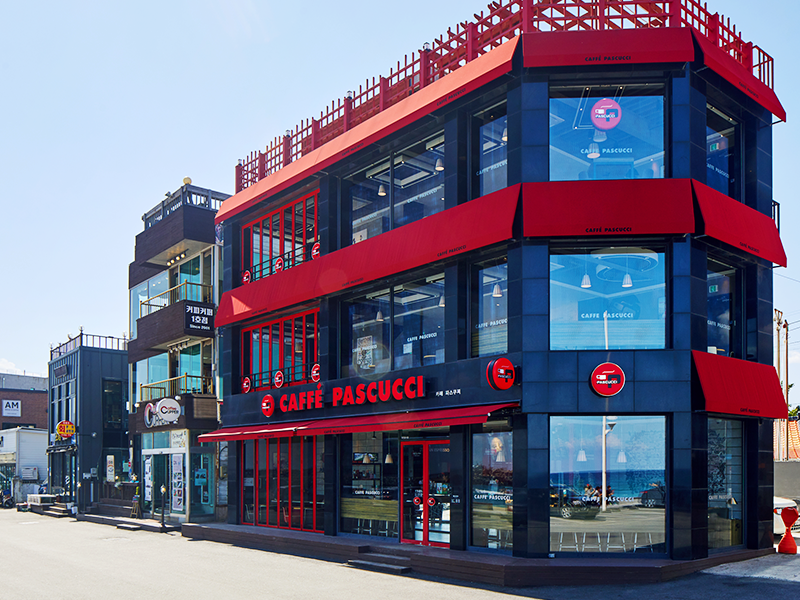 서울에서 3시간을 조금 더 달리면 깊고 푸른 바다가 눈 앞에 펼쳐지는 강릉에 도착합니다. 그중에서도 강릉 안목해변은 ‘안목해변’보다 ‘커피거리’라는 이름으로 더 유명한 곳이죠.  커피거리에 들어서면 눈길을 사로잡는 강렬한 빨간색의 로고가 보입니다. 바로 파스쿠찌 강릉안목해변점입니다.