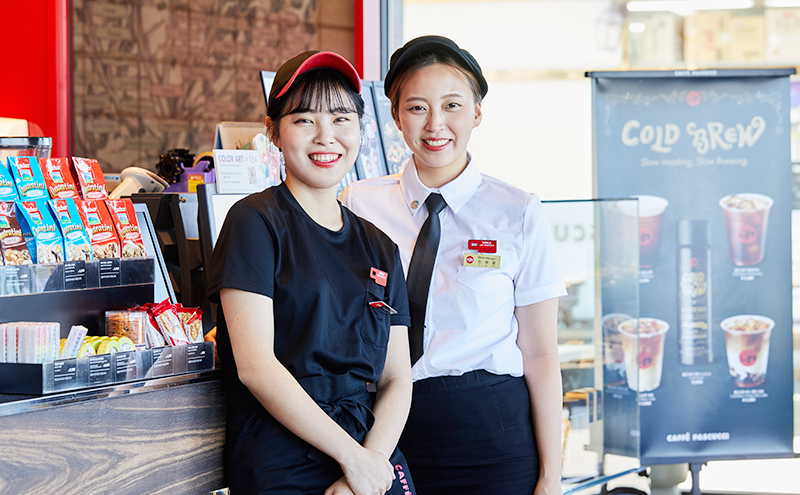 l 파스쿠찌 강릉안목해변점을 책임지고 있는 이은비 스텝과 진보람 점장(왼쪽부터)