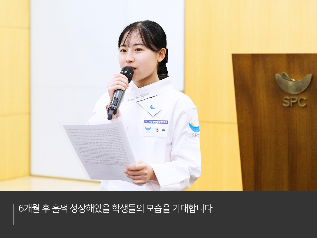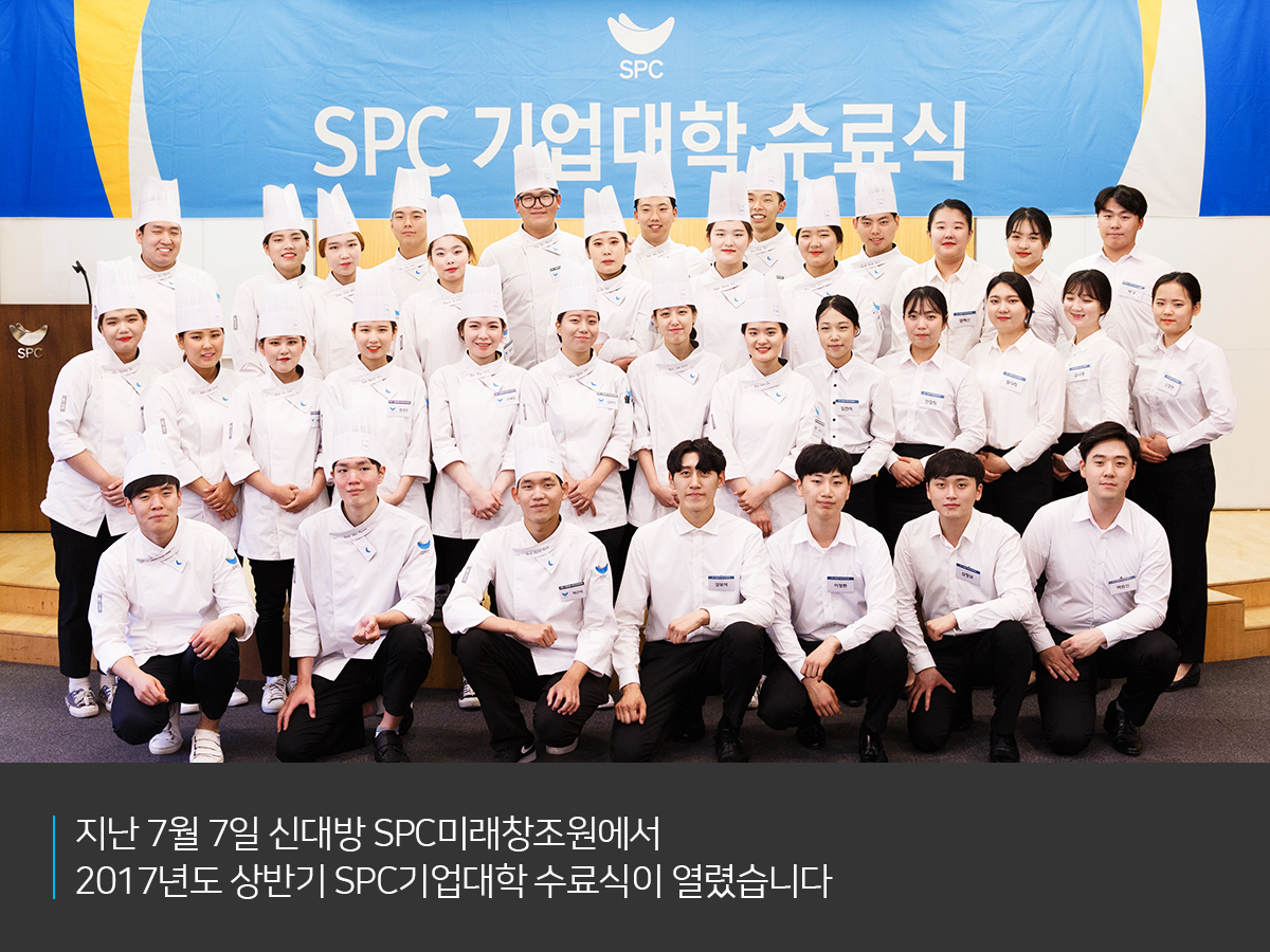 SPC기업대학은 고용노동부-한국산업인력공단 인가를 취득한 우수한 교육과정으로 특성화고교 학생 대상으로 연간 336시간에 이르는 제과제빵, 외식조리, 서비스 분야의 현장 맞춤형 전문 교육을 제공하고 이들을 파리크라상, 파리바게뜨, 던킨도너츠, 외식 사업부 등 그룹이 운영하는 매장에 채용하고 있습니다. 취업 후에는 교육부가 인정하는 전문학사 과정 사내대학인 ‘SPC식품과학대학’을 통해 ‘선취업 후 진학’ 기회를 제공하고 있습니다.