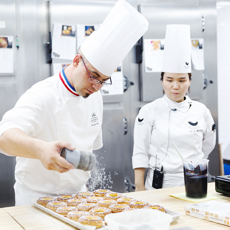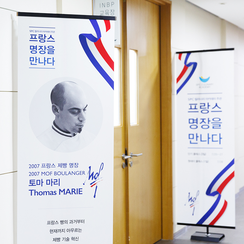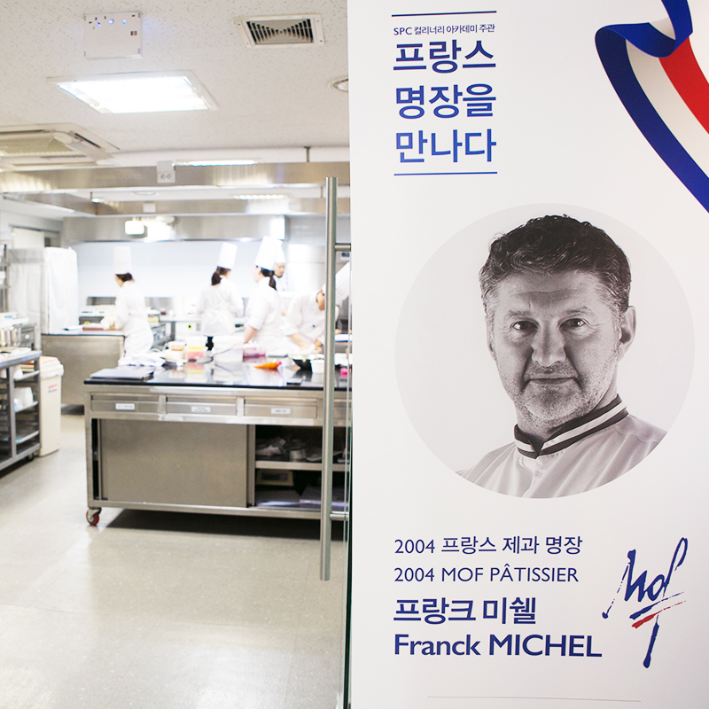 지난 7월 25일부터 28일까지 서울 신대방동에 위치한 SPC 컬리너리 아카데미에서는 4일간 특별한 강의가 진행됐습니다. 『프랑스 명장을 만나다』라는 주제로 열린 이번 강의는, 단기 교육 과정(7/25~27)과 일일 특강(7/28) 등의 프로그램으로 운영되었습니다. 3일에 걸친 단기 교육 과정의 마지막 날, 제빵 명장 토마 마리(Thomas Marie, 2007 MOF BOULANGER) 셰프와 제과 명장 프랑크 미쉘(Franck Michel, 2004 MOF PÂTISSIER) 셰프를 만나고자 SPC 컬리너리 아카데미를 찾아갔습니다.