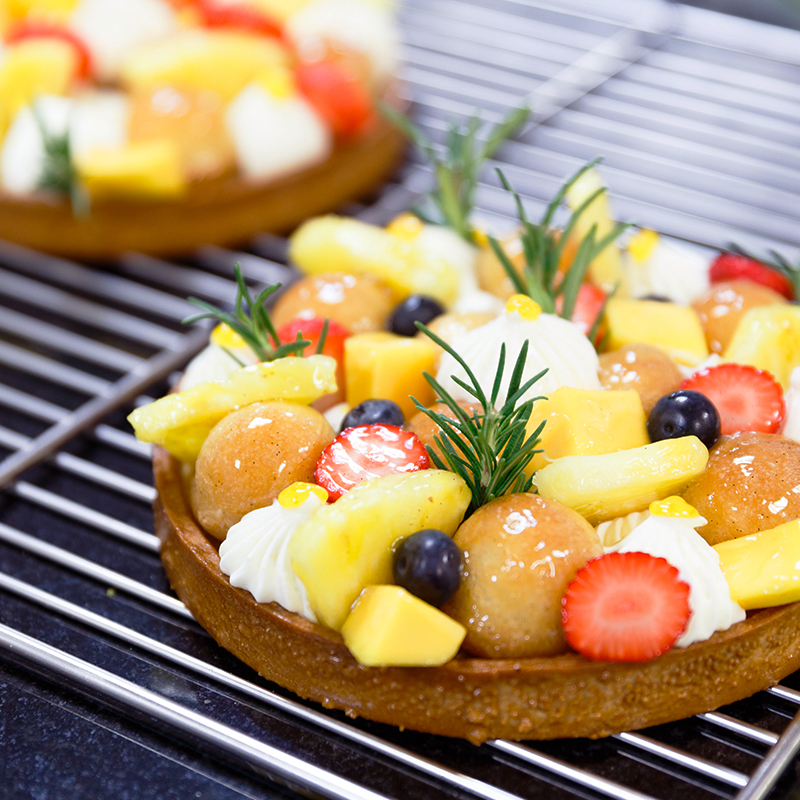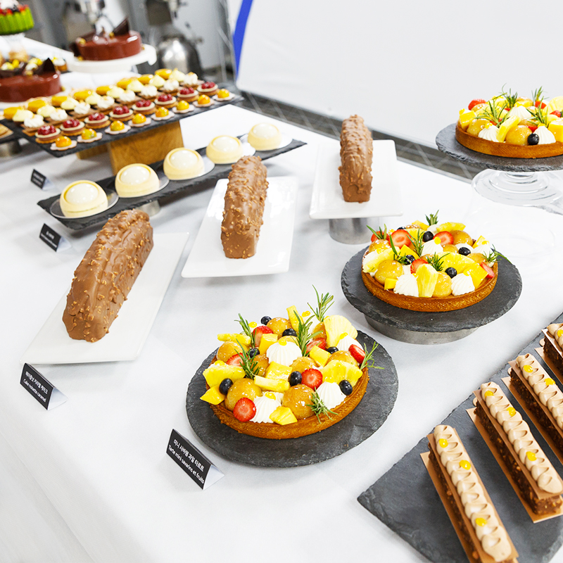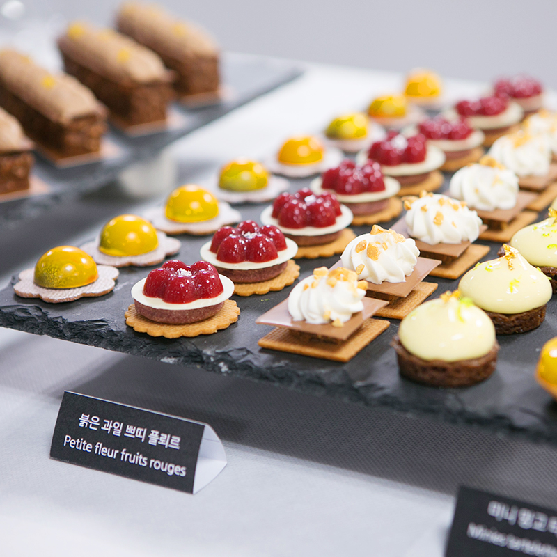 한편 제과 클래스에서는 명장의 시그니처 제품과 제철과일 및 초콜릿을 이용한 디저트 시연이 진행됐습니다. 미쉘 명장은 쁘띠 푸르(petit four, 작은 과자) 5종, 엉트르메, 쁘띠갸또 등의 제작 과정을 보여주고 풍부한 경험을 가진 명장의 노하우를 전수했습니다.
