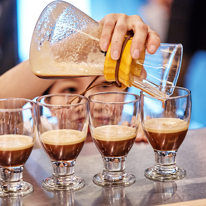 김나희 바리스타는 미지근한 물에 우려낸 티베이스와 온도가 3℃ 낮은 에스프레소를 혼합한 뒤 질소를 주입한 커피를 선보였습니다. 플라워 아로마를 머금은 잔을 준비해 더욱 로맨틱한 커피향을 느낄 수 있었습니다. 관능 포인트는 다크 초콜릿, 오렌지의 화사한 풍미, 미디움 바디입니다.