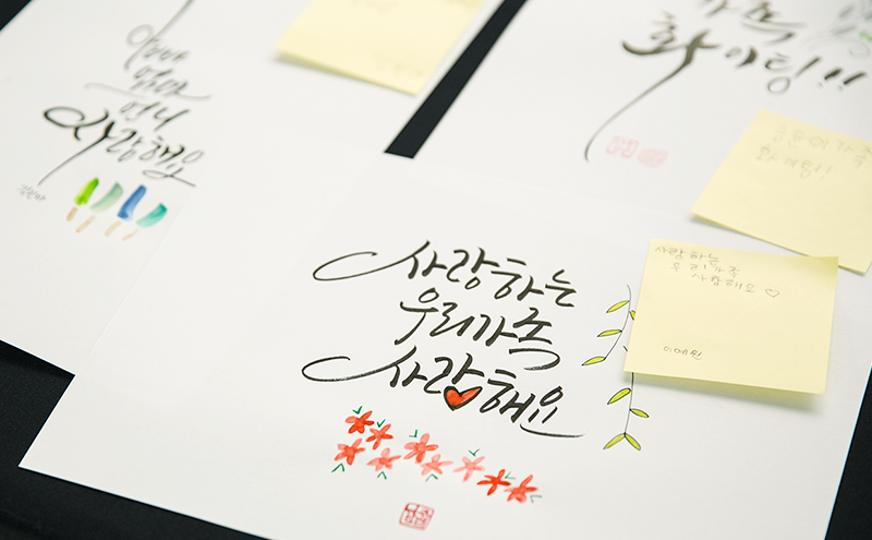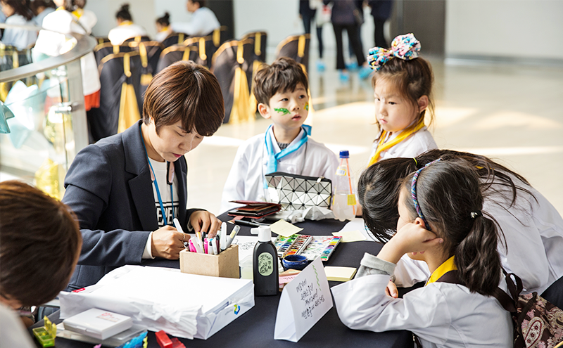 쿠킹클래스 외에도 창립기념을 축하하는 문구로 예쁜 캘리그라피를 써주는 이벤트부터 미각 테스트, 손 위생 테스트 등 다양한 체험 프로그램들이 이어졌습니다. 특히, 귀여운 풍선 인형을 선물로 받을 수 있는 레크리에이션 프로그램은 참가 가족 모두가 함께 참여한 행복한 시간이었습니다.