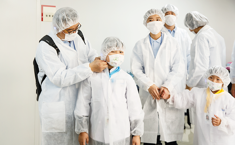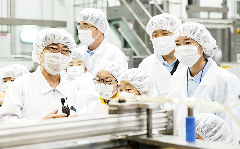 최첨단 설비와 식품안전 시스템을 갖춘 평택공장은 30여 개 라인에서 휴면 반죽을 비롯해 완제품 빵, 커피, 아이스바, 젤라또 등 다양한 식품을 생산해내고 있습니다. 이날 가족들은 타르트 라인과 아이스크림 라인을 둘러보고, 갓 생산된 제품을 시식하는 시간도 가졌습니다.