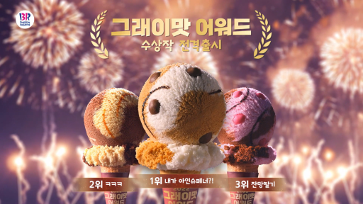 비알코리아(주), 보도자료2023. 10. 0510만 대 1의 경쟁률 뚫은 영예의 수상작! 배라 아이스크림으로 즐겨요~ SPC 배스킨라빈스, 10월 이달의 맛 ‘그래이맛 어워드’ 광고 영상 공개 see more..