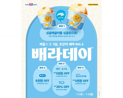 비알코리아(주), 보도자료2022. 09. 29신제품은 바로 먹어야 제맛! 매월 1,2,3일 누구보다 빠르게 만나보자! SPC 배스킨라빈스, 10월 ‘배라데이’ 프로모션 실시 see more..