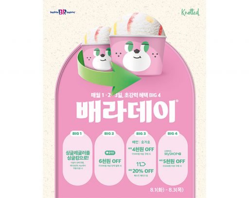 비알코리아(주), 보도자료2023. 08. 011,2,3일 초강력 혜택으로 이달의 맛 즐기고, 시원하게 8월을 시작해요~ SPC 배스킨라빈스, 8월 노티드 협업 제품 ‘배라데이’ 프로모션 진행 see more..