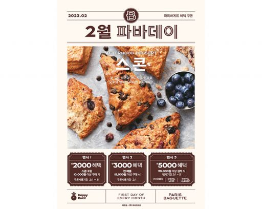 (주)파리크라상, 보도자료2023. 01. 31매월 1일 매장에서 1만 5천 원 이상 구매 시, 3천원 할인 혜택 제공 파리바게뜨, 2월의 ‘파바데이’ 프로모션 진행 see more..