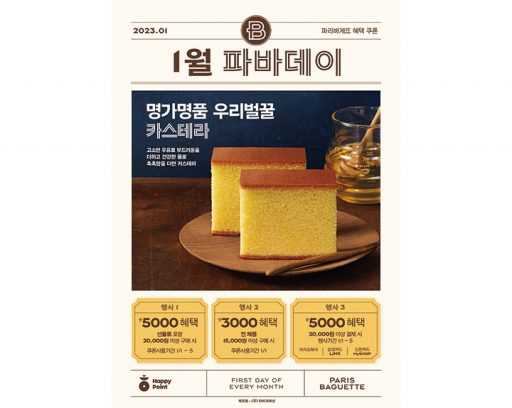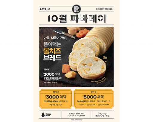 (주)파리크라상, 보도자료2022. 10. 0110월 1일 단 하루, 1만 5천 원 이상 구매 시 3천 원 혜택 SPC 파리바게뜨, 10월의 ‘파바데이’ 프로모션 진행 see more..