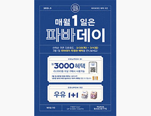 (주)파리크라상, 보도자료2021. 06. 30‘월간뉴파바’로 새롭게 바뀐 7월의 파바데이를 만나보세요! 파리바게뜨, 혜택 더 풍성해진 7월 파바데이 프로모션 진행 see more..