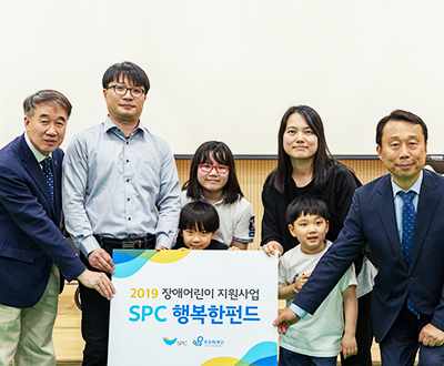SPC그룹, 보도자료2020. 05. 22SPC그룹 임직원들의 기부로 장애 아동의 재활 도와 SPC그룹, 임직원 기부로 장애어린이 돕는 ‘SPC 행복한 펀드’ 전달 see more..