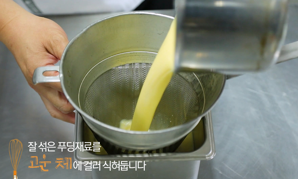 5. 잘 섞은 푸딩재료를 고운 체에 걸러 식혀둡니다.