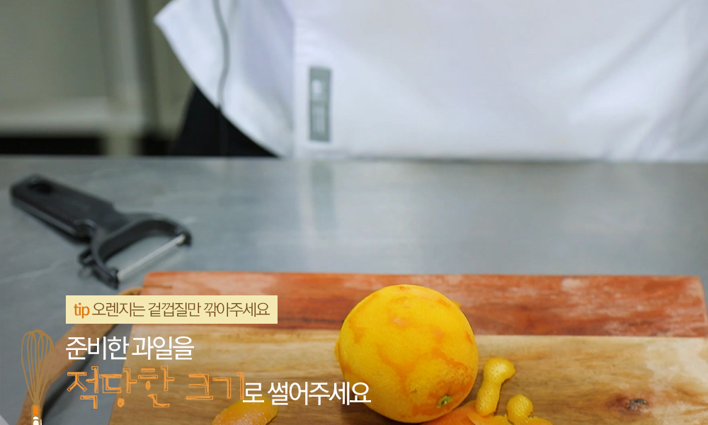 Tip! 오렌지는 주황색 겉껍질만 깎아야 더 많은 영양분을 섭취할 수 있습니다.