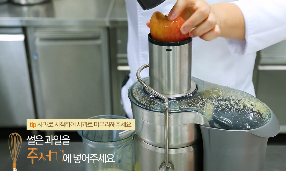 Tip! 처음과 마지막은 사과로 갈아야 식감이 더욱 부드러워집니다.