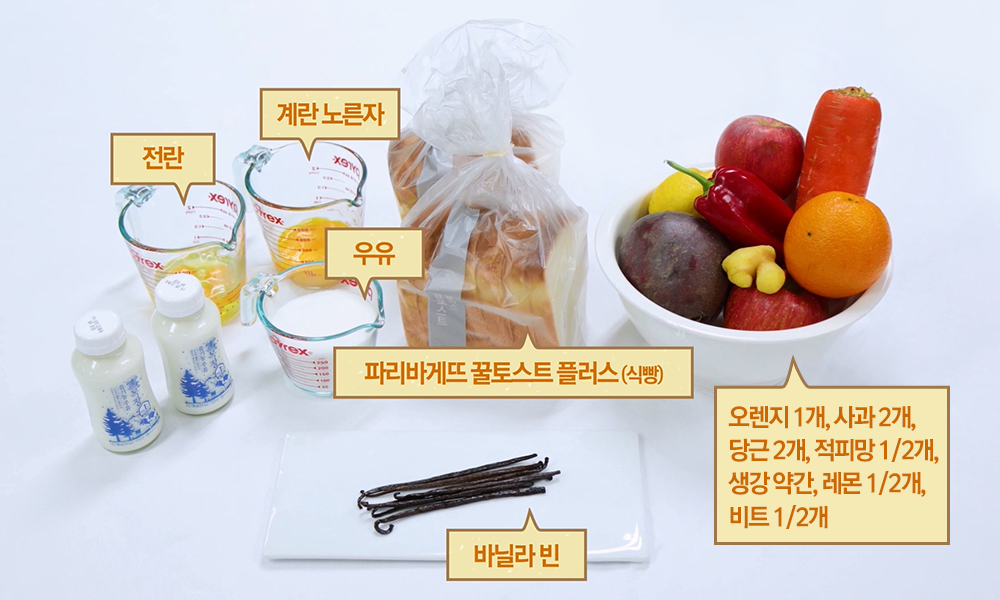 간단한 레시피에 맛까지 좋아 ‘홈 베이킹’ 1순위로 꼽기도 하는데요. SPC 컬리너리 아카데미 임석 강사가 파리바게뜨 꿀토스트 플러스 식빵을 활용한 ‘프렌치 브레드 푸딩’, 곁들여 마시기 좋은 ‘건강 주스’ 레시피를 소개합니다.