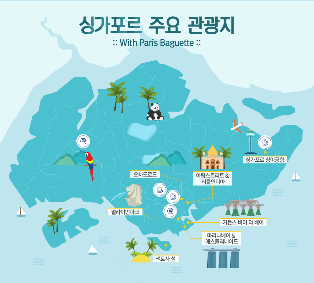 세계적인 쇼핑명소 오차드 로드, 이슬람 문화를 품은 독특한 거리인 부기스의 아랍 스트리트, 마리나 베이 주변에 있는 먹자거리 라우파삿 등 싱가포르를 대표하는 여행지 곳곳에서도 파리바게뜨를 만나볼 수 있는데요. 올 여름 싱가포르 여행의 시작과 끝, 파리바게뜨와 함께 하는 건 어떨까요?