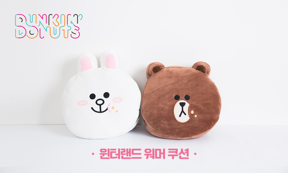 이번 겨울 던킨도너츠에서는 부드러운 촉감에 폭신폭신함을 살린 편안한 워머 쿠션을 준비했습니다. 뒷면에 별도 포켓이 있어 구매 시 함께 제공되는 핫팩을 넣으면 따뜻한 핸드 워머로도 사용 가능합니다. 양손을 넣어 사용할 수 있어 높은 실용성을 자랑하는데요. 라인프렌즈 캐릭터 브라운과 코니의 얼굴로 제작되어 꼭 끌어안고 싶은 귀여움을 선사합니다. 던킨도너츠 제품을 1만 원 이상 구매하면 ‘윈터랜드 워머쿠션’을 5,900원에 구매할 수 있습니다. 프로모션 상품 소진 시까지 진행되며 인형 별도 구매는 불가능합니다. 던킨도너츠에서 라인프렌즈와 맛있게 즐기시길 바랍니다.