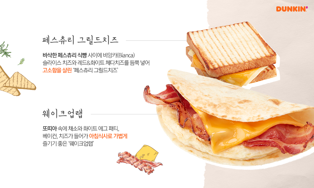 던킨도너츠는 지난 3월 핫샌드위치 신제품 2종을 출시했습니다. 바쁜 아침 간단하지만 든든하게 즐길 수 있는 스낵메뉴로 소비자들 사이에서 인기가 좋습니다. 매장에서는 핫샌드위치와 커피 등의 음료를 합리적인 가격에 즐길 수 있는 모닝콤보를 판매 중인데, 매일 오전 11시까지 핫샌드위치를 구매할 경우 아메리카노, 오렌지주스, 콜라 등 콤보 음료를 1,000원에 즐길 수 있습니다. 또, 핫샌드위치는 해피앱의 딜리버리를 통해 배달 주문이 가능한 제품으로, 원하는 곳에서 더욱 편리하게 즐길 수 있습니다.