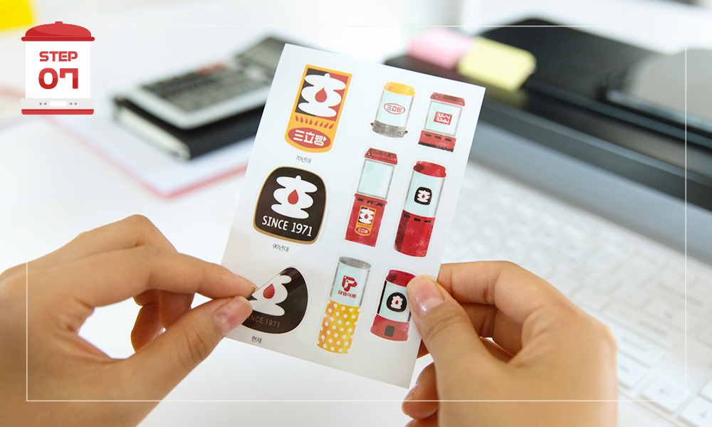 호빵이 가득 그려진 필름지를 가습기 본체 안쪽으로 끼워 넣어주세요.