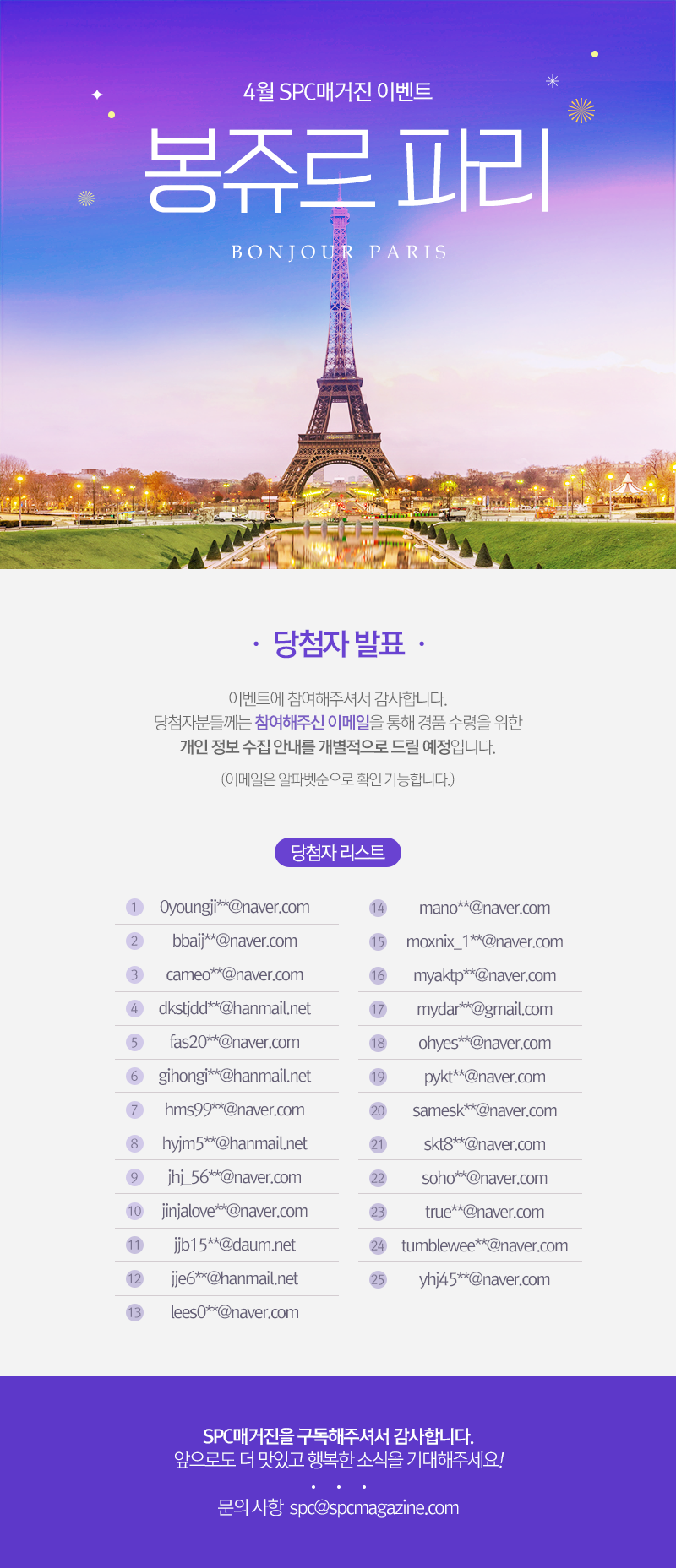 4월 SPC매거진 이벤트 '당첨자 발표'
