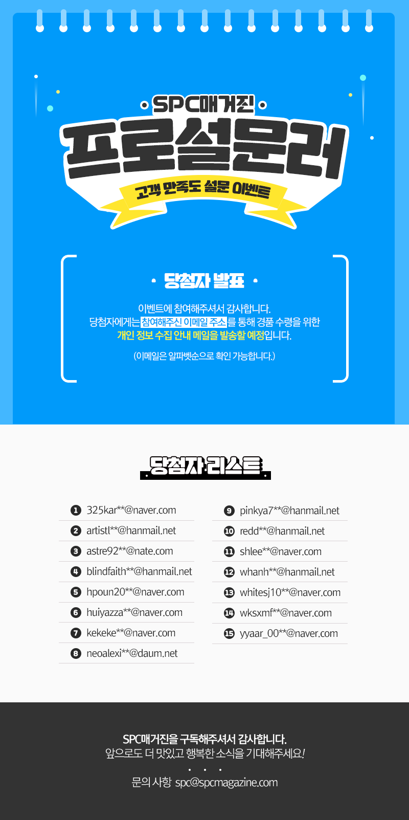 • 8월 SPC매거진 이벤트 ‘당첨자 발표’